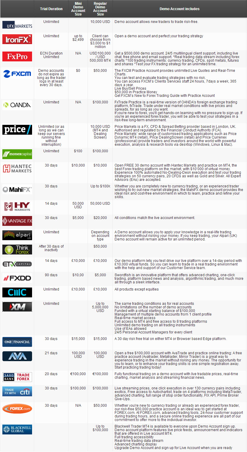 Anyway to stop rambling i've ripped this list offline to further prove my point that while demos are widely provided many come with some expectations and restrictions and the lack of is one of Onetrade's key strong points in my opinion, also i noticed it is web based rather than having to download a client terminal, so another point for OneTrade is that you can do it anywhere without the cumbersome download