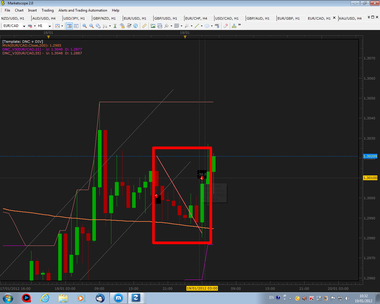 I got a good run on CAD/JPY last week. Was up 112 PIPs on the trade, but price retraced for 68 PIPs profit at my manually trailed stop.