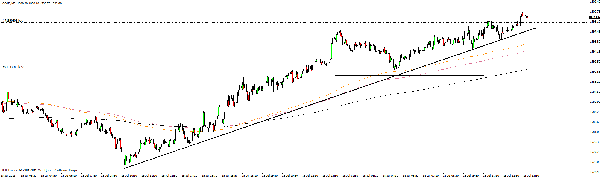 Closed my GOLD (closed because touched 1600 BRN) longs right now and closed my EURCAD shorts (stopped out).