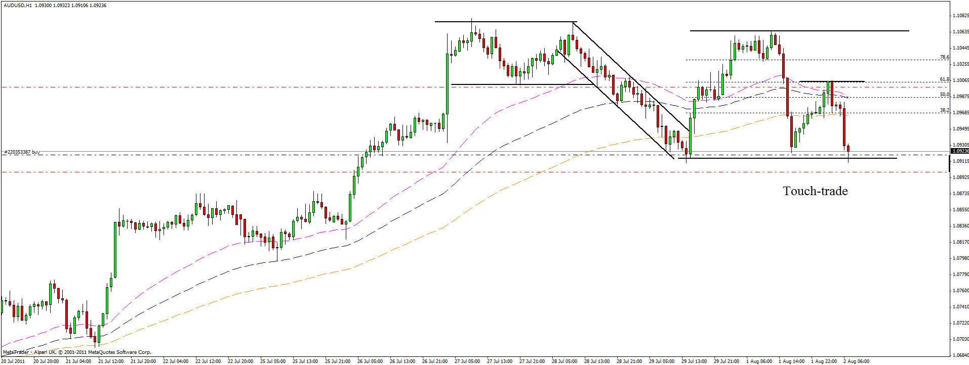 Gonna be a touch-trade this one. Nowadays I can't see so many signals anyway. XAU\USD position got stopped out.