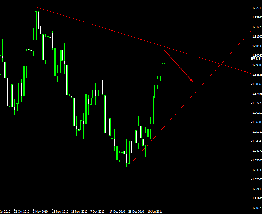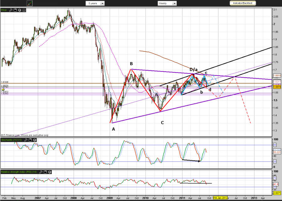 I've only recently started lookng at triangles so I could have labeled it up wrong. I've attached a weekly chart of GBP/USD that shows a triangle within a much larger triangle. Also, not the SSD negative divergence.